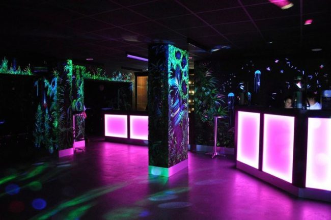 Réalisation des travaux : ami 2011 Type de travaux : éclairage + écran LED pixel + habillage poteaux plexi LED RGB