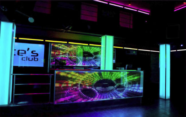 Réalisation des travaux : ami 2011 Type de travaux : éclairage + écran LED pixel + habillage poteaux plexi LED RGB